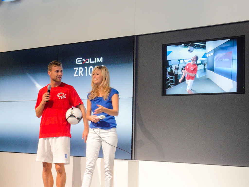 10 Tage im Einsatz für Casio war Fussballartist Daniel auf der Photokina 2012. Täglich präsentierte Daniel den Messebesuchern auf der Showbühne von Casio mit einem Mix aus Moderation und Fußball-Freestyle die neuen Features der Exilim Kameras.